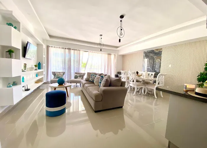 Doté d'un espace de jeu, spacieux| Appartement Elegancia Tropical Beach And Pool Bibijagua Punta Cana Rd est situé dans la localité de "Bavaro", à 4 km du Mangu Disco. Le domicile de 145 m^2 a une terrasse avec vue sur la mer.